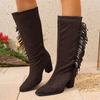 Moda 2025 Novas Botas de Cano Médio Camurça Salto Bloco Salto Super Alto Zíper Lateral Botas da Moda para Outono e Inverno Mulheres