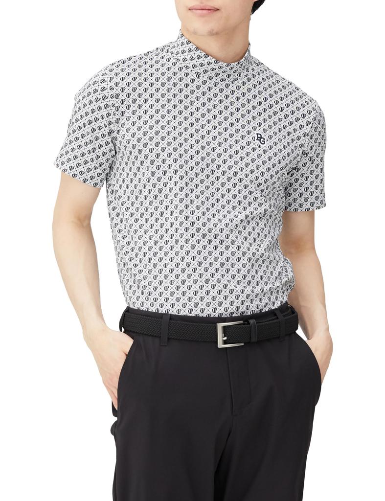 PEARLY GATES Camiseta de Manga Curta Gola Alta Monograma Golf Camiseta Íntima x Marinho Tamanho 6 Masculino (Absorção de Umidade, Secagem Rápida, Estampa) / / 053-4167305