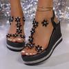 Sandálias de Salto Anabela com Renda de Flor para Mulheres Moda Verão Plataforma Grossa Sandalias Mujer Fundo Grosso Antiderrapante Sapatos de Praia Mulher