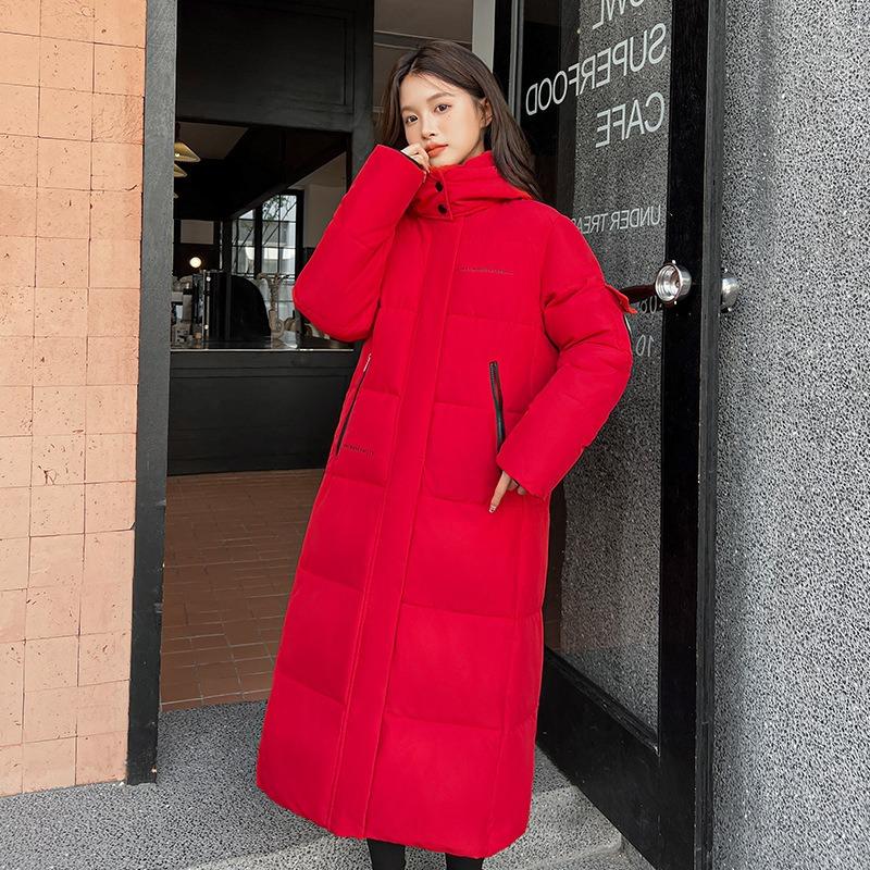 New hooded cotton-padded women's extended knee-length bare winter loose thickened armband cotton-padded jacket