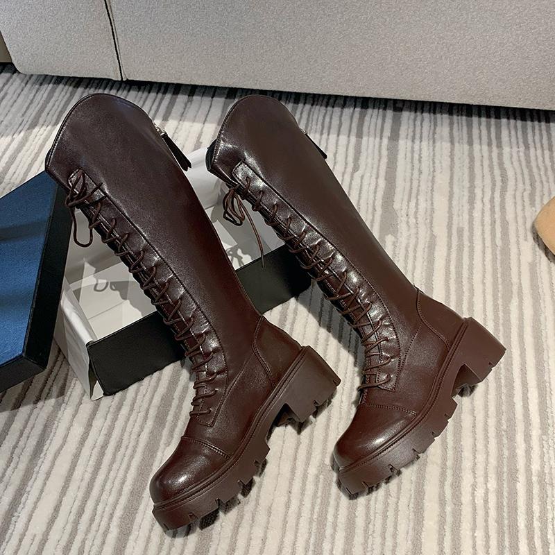 Moda Inverno Mulheres Zíper Nova Bota Longa Moda Cadarço Sapatos Antiderrapantes Casuais Botas Tendência Solado Grosso Sapato Confortável para Senhoras Botas