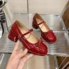 Fashion Women's Bow Versatile High Heels Mary Jane Thick Soled Leather Shoes Fashion Elegant Shoes Fashion Ladies Pumps Zapatos Mujer