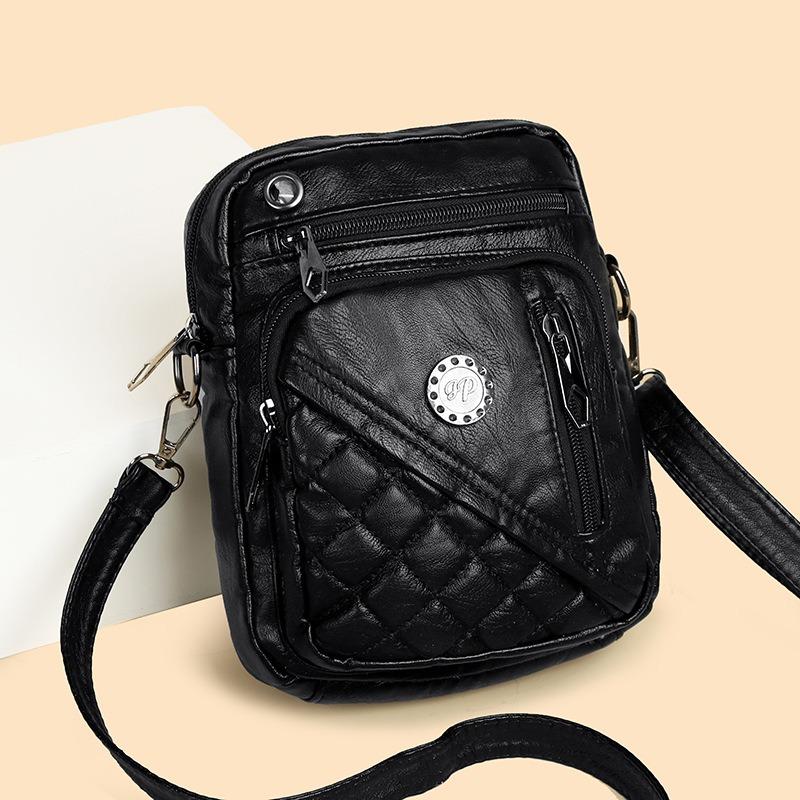 Women's small square bag new washed leather shoulder messenger bag medium women's bag mother bag multi-layer bag
