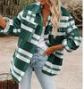 Jaqueta Camisa de Lã Flanelada Xadrez com Botões Feminina Outono/Inverno