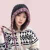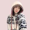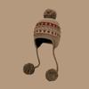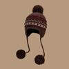 Women's Fair Isle Lace-Up Ear Protection Beanie: Thick, Warm Knitted Pompom Hat for Autumn & Winter