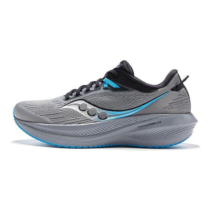 SAUCONY Triumph 21 Cadarço Durável Impermeável Respirável Cano Baixo Treino Cidade Deslocamento Sapatos de Corrida Tênis Masculino Cinza Preto S20881-20