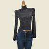 Foreign Trade Original Order Silver Silk Long Sleeves Bottoming Shirt Fashion Puff Sleeve Sexy Open Back Slim Fit Pullover Tops