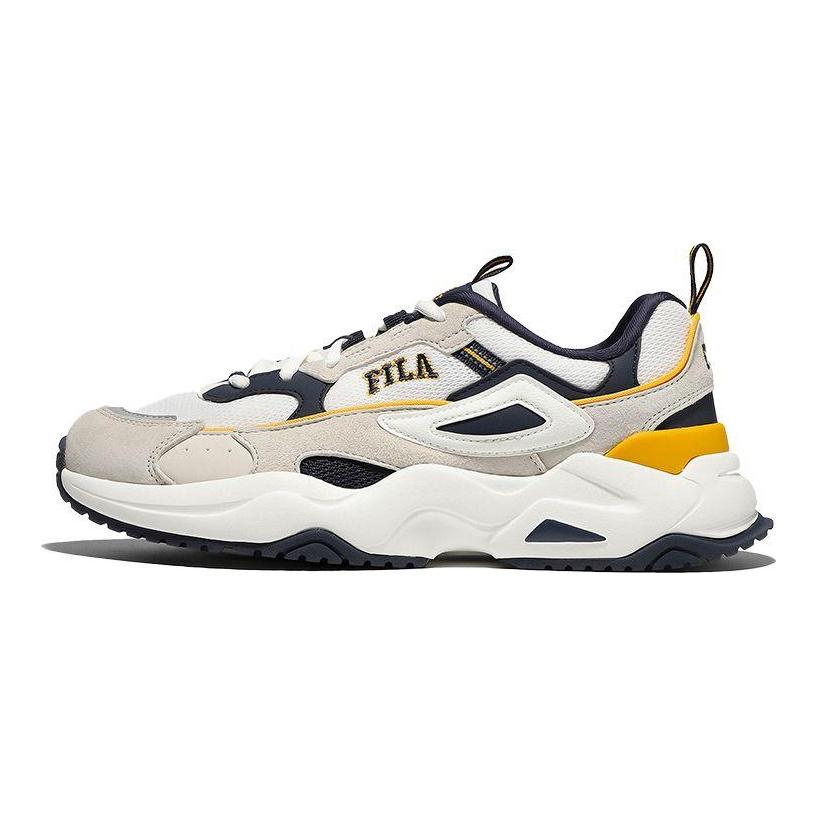 Fila Rayflide Tecido Couro Sintético Moda Versátil Cano Baixo Casual Tênis Unissex Azul Amarelo 1RM02053E_444