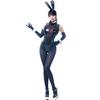4-piece ninja costume includes mock neck cutout matte bodysuit with strappy lace detailing, matching belt and accessories with draping