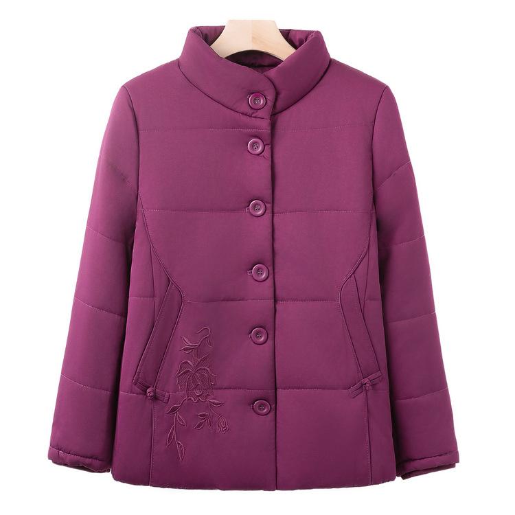 Middle-aged and Elderly Winter Cotton Clothes for Female Grandmother New Cotton Coat Stand Collar Embroidered Mother Winter Old Lady Coat