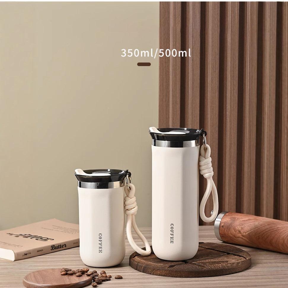Double-Layer Vacuum-Insulated Coffee Mug with Pull-Up Handle 304 Stainless Steel Thermos Outdoor Portable Sports Water Bottle Solid Color Water Cup