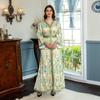 23 Middle East Elegance Robe Ribbon Stitching Printing Belt French Retro Arabic Plus Size Dress Dress