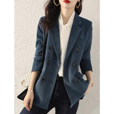 Autumn New Women clothes Plum Color Corduroy Small Suit Retro Slim fit Small Temperament Long sleeve Blazers