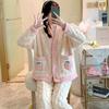 Thickened Warm Sleepwear Pink Peach Coral Velvet Women Homewear Suit Autumn and Winter Ladies Cardigan Two-Piece Set Nightwear