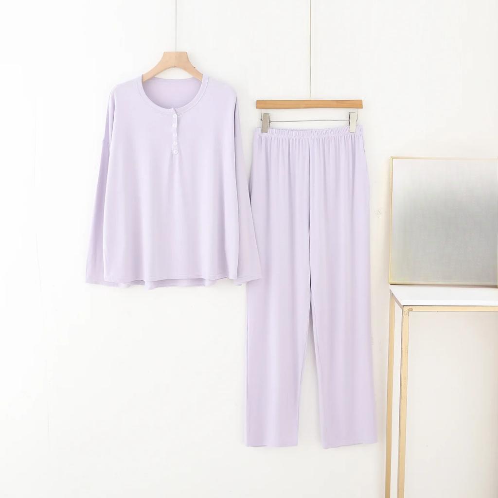 Women's Spring and Autumn Pajama Set Long Sleeve Long Pants Home Clothes Simple and Casual Pajamas Set
