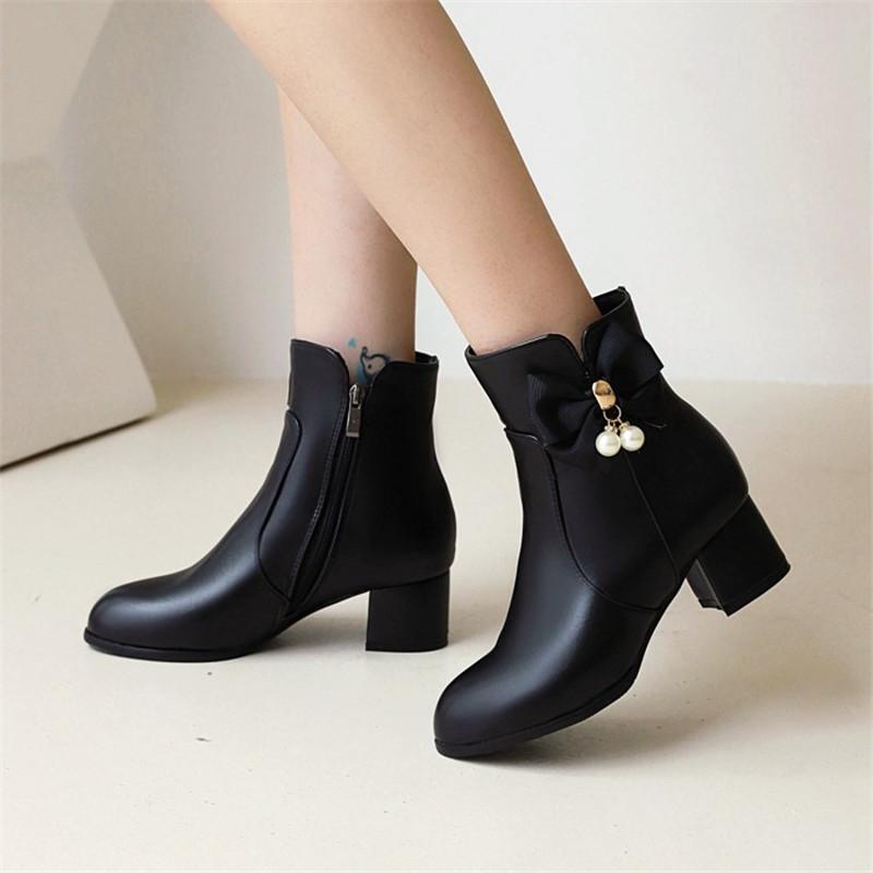 Sweet Bow Girls Ankle Boots Lolita Shoes Women Round Toe Autumn Winter High Heels Zip Shoes Thick Heel Fashion Women Boots 32-43