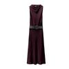 Spring New Women clothes French style With Belt round Neck Sleeveless Silk Satin Texture Midi Dress 2277302
