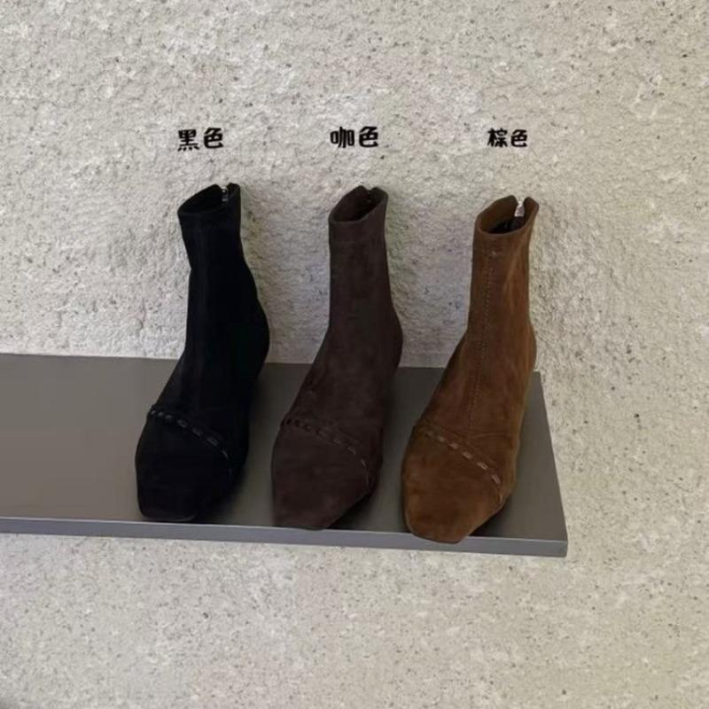 Retro inner heightening pointed versatile short boots early autumn new thin boots small bare boots fashion short boots women