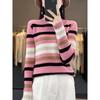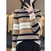 Autumn and winter new semi-turtleneck striped knitted sweater pullover female slim slim slim bottom women's sweater striped