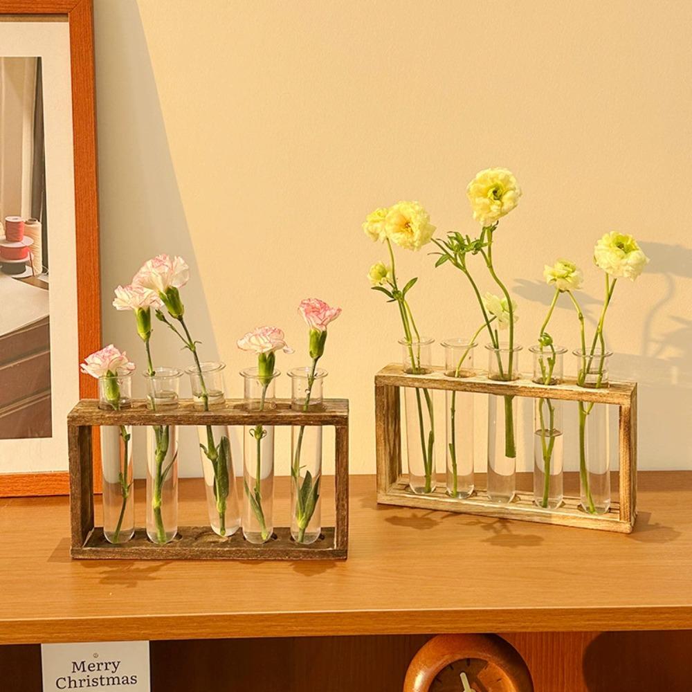 Creative Retro Hydroponic Green Plant Test Tube Vase Series Wooden Frame Vase Office Desktop Decoration Home Decoration