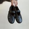 Tudo pele de carneiro~ couro genuíno cabeça redonda boca rasa sapatos de salto único femininos um pedal sola plana sapatos de couro pequenos versão coreana versátil simpl