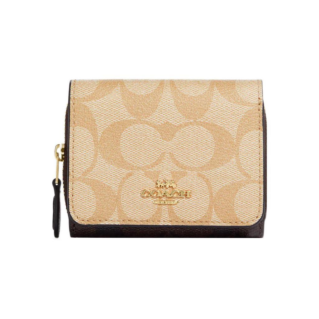 New COACH Trifold Wallet Coated Canvas With Smooth Leather Detail Card Holder Wallet Small Size Women's Light Khaki & Brown 78081-IMUOH