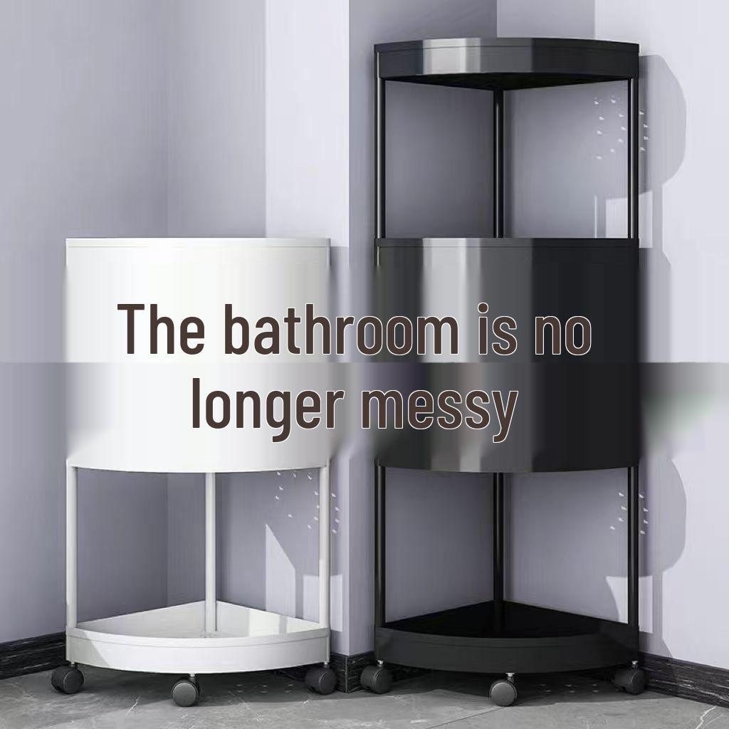 Compact Triangular Bathroom Storage Rack: Multi-Layer, Floor-Standing, Moveable Corner Organizer.