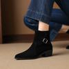 Fashion 2025 NEW Autumn Women Boots Cow Suede Leather Women Shoes Pointed Toe Ankle Boots Chunky Heel Western Modern Chelsea Boots