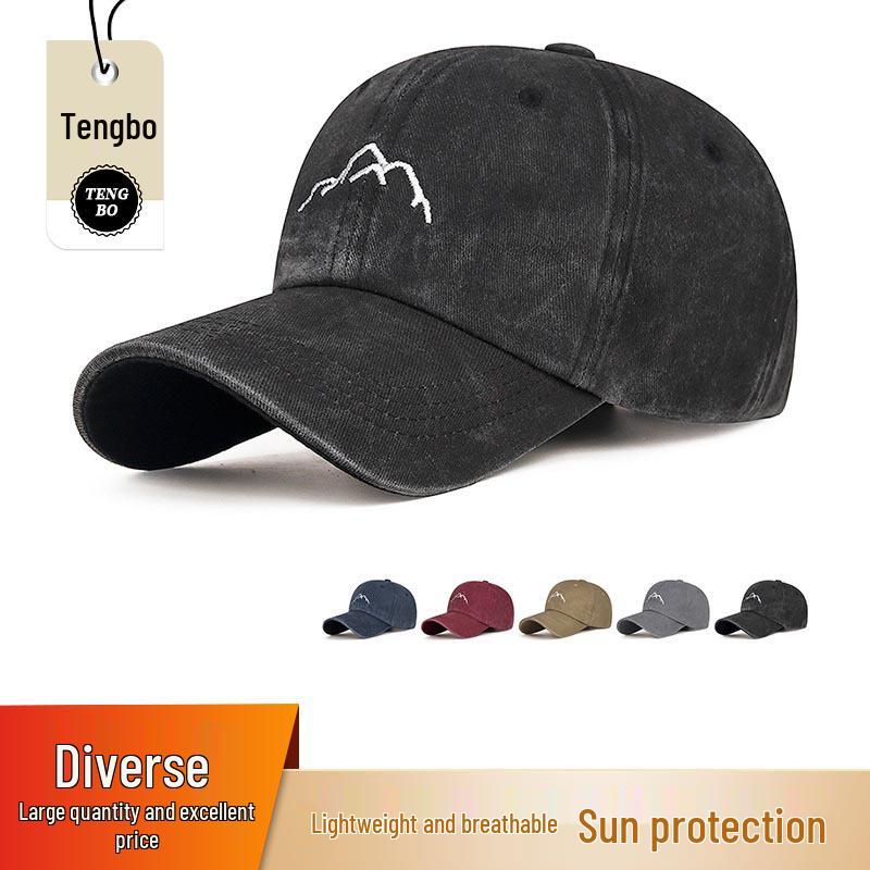 Boné de Basebol Unisexo Retro Desgastado com Design Bordado de Pico de Montanha