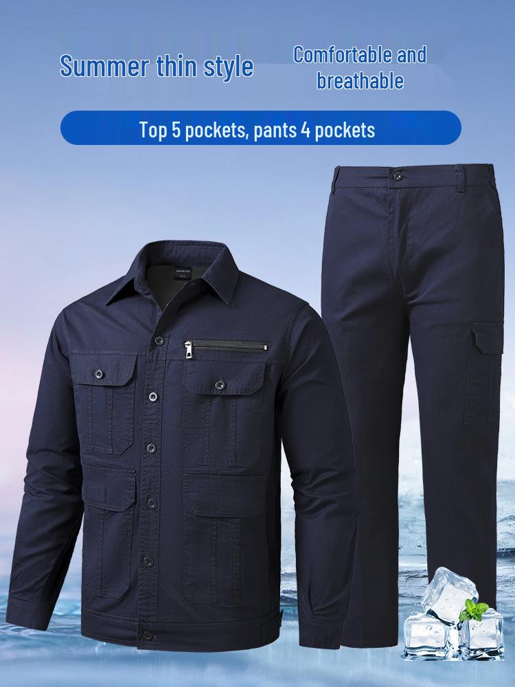 Conjunto de Roupa de Trabalho de Verão para Homem em Sarja de Algodão - Leve, Corte Solto com Design Multibolsos para Soldadores