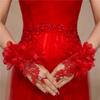 Luvas de Noiva Sem Dedos Bordadas para Celebração de Casamento - Design Floral Vermelho e Branco