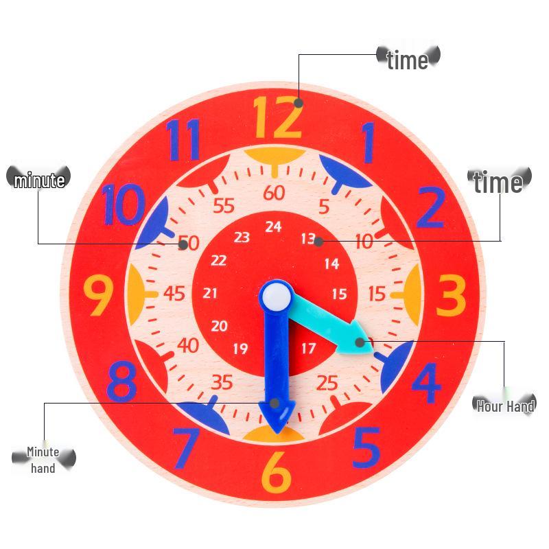 Wooden Clock Time Recognition Puzzle Toy for Kids - Early Math Teaching Aid