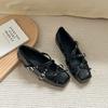 Bow Mary Jane ballet single shoes women's 2025 summer new French light mouth with skirt low heel jk small leather shoes