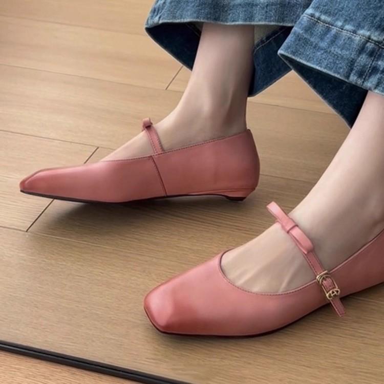 Sheepskin version~ Leather bow French word belt Mary Jane shoes women's retro flat ballet single shoes evening shoes