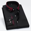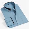 Esta camisa masculina business casual é perfeita para a primavera e o outono, oferecendo uma mistura de estilo e conforto.. Confeccionado em tecido de poliéster elástico, garante facilidade de movimento ao mesmo tempo que mantém um visual elegante.. A camisa apresenta um padrão sólido e um decote quadrado único com gola contrastante, adicionando um toque moderno ao seu guarda-roupa.. Com suas mangas compridas e design que não precisa passar, é conveniente e ideal para um estilo de vida agitado, mantendo você com uma aparência impecável o dia todo.