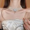 Colar Duplo de Pérolas Barrocas com Cravação de Diamantes - Corrente Clavicular Retro Francesa Feminina, Joalheria de Moda de Alta Qualidade.