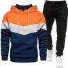 Elevate your casual wardrobe with this stylish two-piece sports suit, perfect for autumn and spring. The set features a spliced hooded sweatshirt paired with matching long pants, offering a contemporary and comfortable look. Crafted from a cotton blend, the material ensures softness and breathability, making it ideal for all-day wear. Whether you're heading out for a jog or relaxing at home, this suit combines functionality with modern fashion flair.