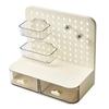 - Placa Perfurada Tipo Gaveta para Armazenamento Oculto: O organizador inclui um painel perfurado tipo gaveta, proporcionando armazenamento discreto para itens menores.. Este recurso ajuda a manter seus itens essenciais fora de vista, mas facilmente acessíveis, mantendo uma superfície de mesa limpa e organizada.
