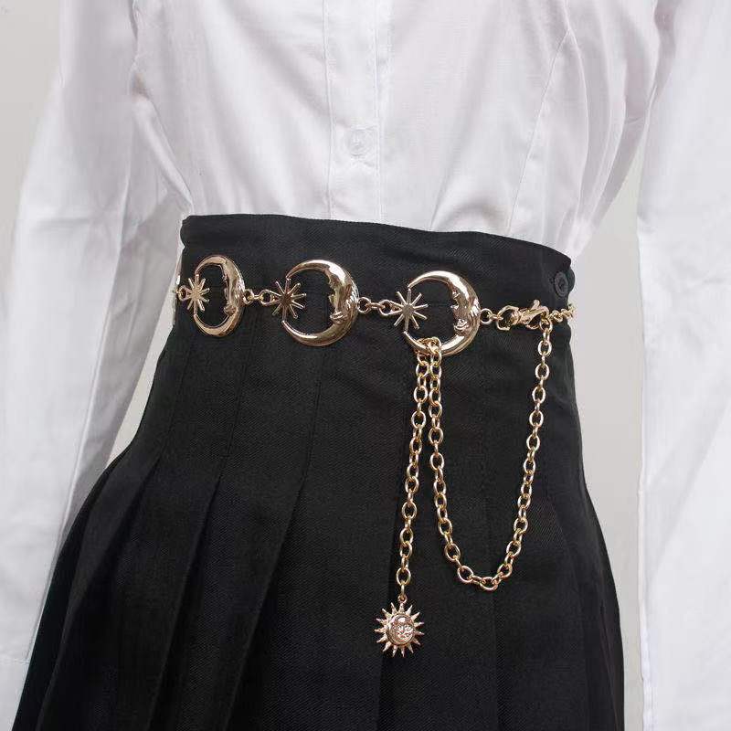 Cinto Casual Feminino Mais Recente Corrente de Metal Feminina Lua Decorativa Corrente de Cintura Cinto Feminino para Combinar com Saia Calça