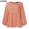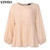 VONDA Women Round Neck Casual Long Sleeve Elegant Oversized Blouse