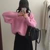 Suéter feminino de outono com gola redonda e cor sólida