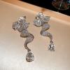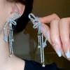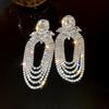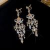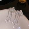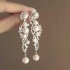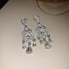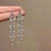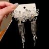 2025 Light Luxury Silver Needle Diamond Flower Tassel Earrings - Elegant European & American Style for Women