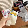 Meias Fofas de Gato Listradas para Mulheres, Meias de Meia-Panturrilha para Outono e Inverno, Modernas para Mulheres, Meias Femininas Sem Costura de Desenho Animado Dopamina