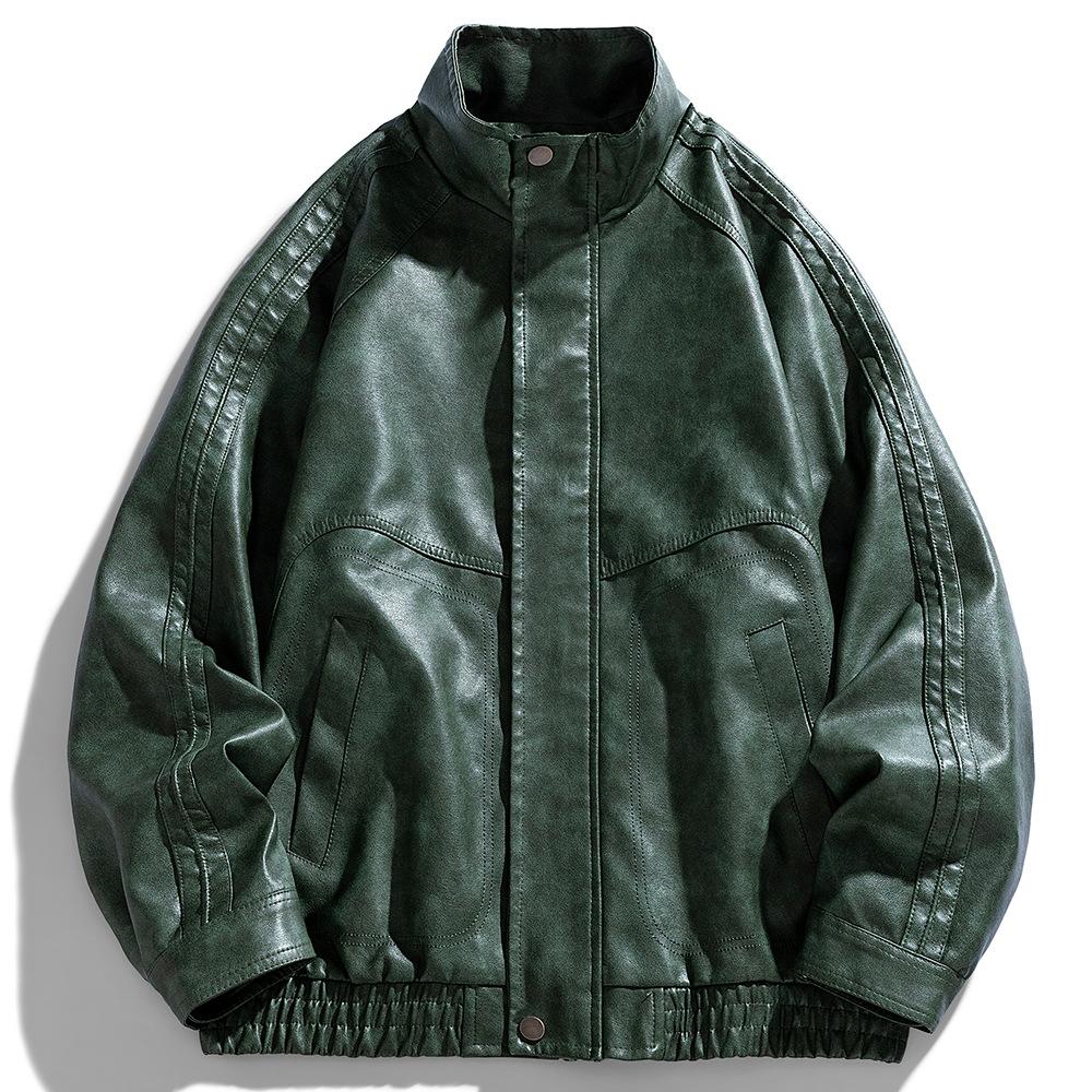 American Retro Men's Leather Jacket Men's High Street Loose Casual Stand Collar Motorcycle Leather Jacket Handsome