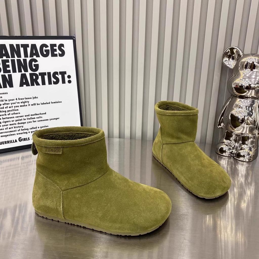 2025 autumn and winter new matte leather fashion snow boots versatile knight boots genuine leather flat-soled women's shoes soft-soled Korean versi