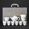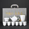 Conjunto de chá de porcelana branca jade suet, conjunto kung fu de bule, um conjunto completo de xícaras para fazer chá doméstico