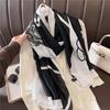 Fashion Brand Women Silk Scarf Luxury Dark Green Aztec Floral Pashmina Shawls Wrap Soft Foulard Femme Muslim Hijab 180*90Cm