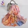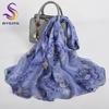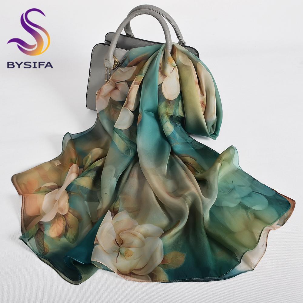 [BYSIFA] Blue Green 100% Mulberry Silk Scarf Wrap Winter Flower Design Chiffon Long Scarves Shawls Ladies Beach Shawl Echarpes