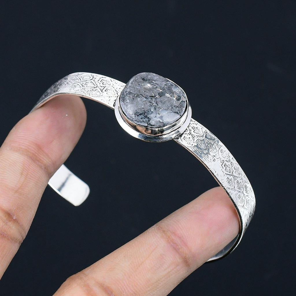 925 Sterling Silver Black Fossil Coral Gemstone Wedding Mother Bangle Jewelry