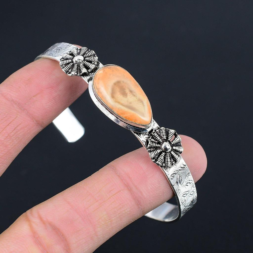 Natural Imperial Jasper Gemstone 925 Sterling Silver Bangle Adjustable For Girls